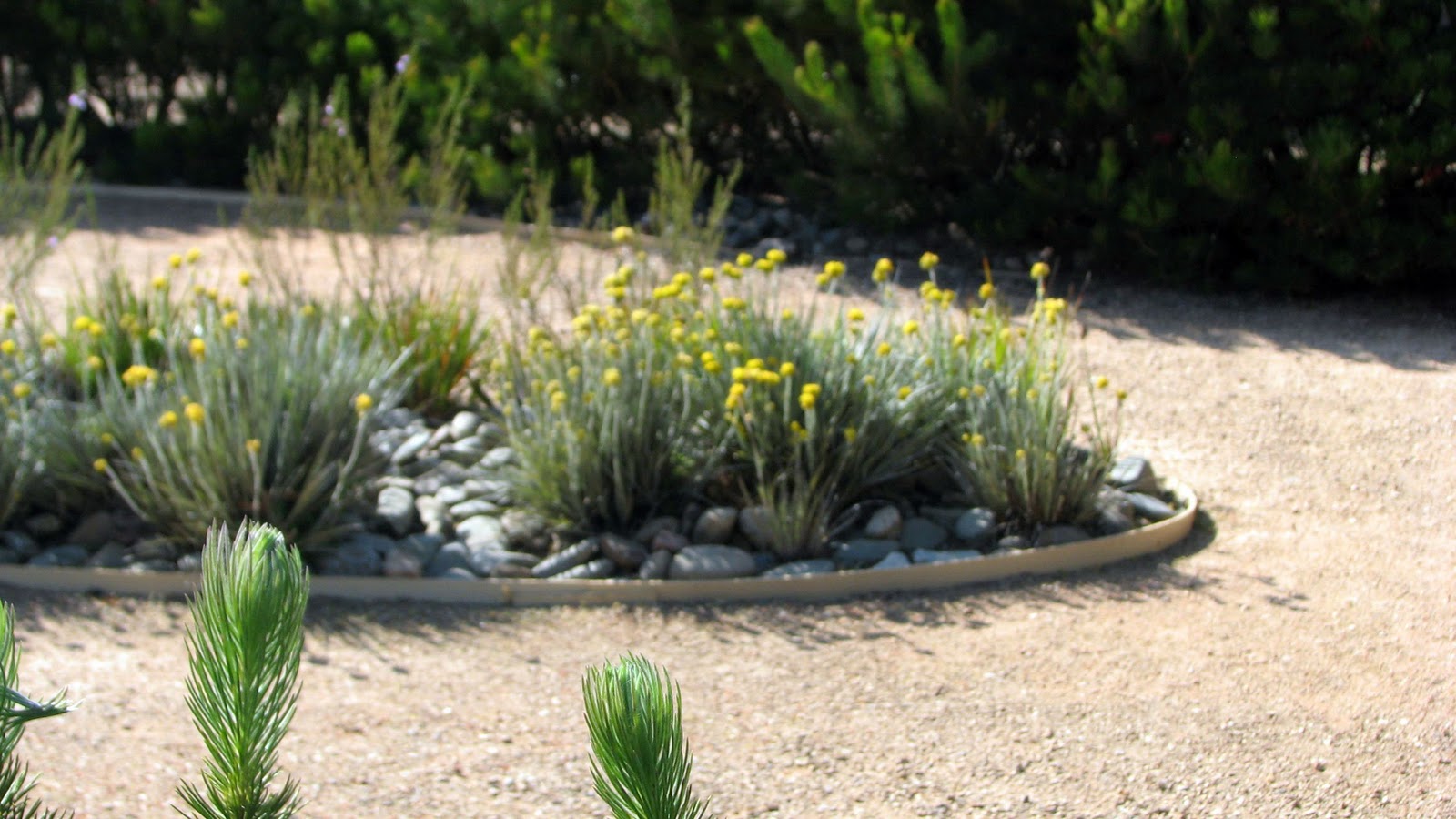 The mass planting of Dianella in front of the stacked stone wall has gone crazy. These little guys have doubled in size already.